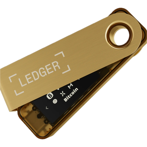 Новинка 2024 года Ledger Nano X Gold оснащена широким дисплеем и увеличенной памятью, что расширяет возможности и позволяет загрузить более 100 приложений для работы с разными криптовалютами.